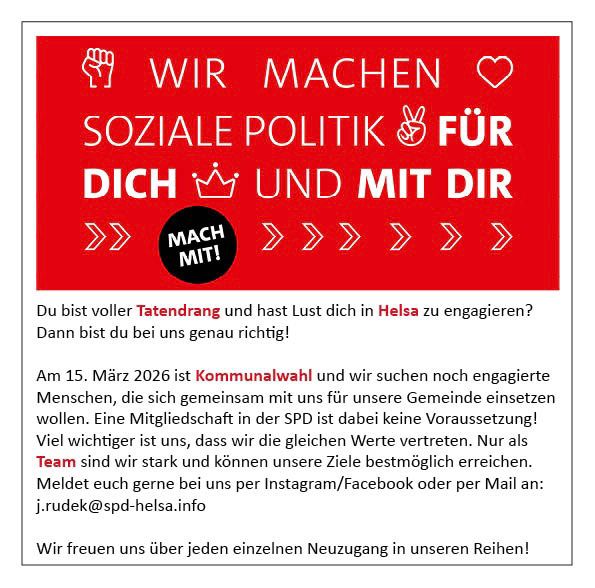 Liebes Mitglied des Vorstandes des SPD Ortsvereins Helsa liebes Fraktionsmitglied,